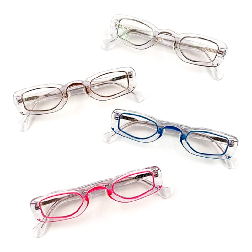 The clear frame makes it a great choice for pairing with colored lenses.